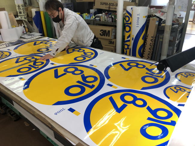 日本でもステッカーでの施工が始まった当初は弊社もカッティングマシーンを導入する前はコピーした青焼き原稿をもとにフリーハンドでカット(ハーフカット)して文字等を製作していました。